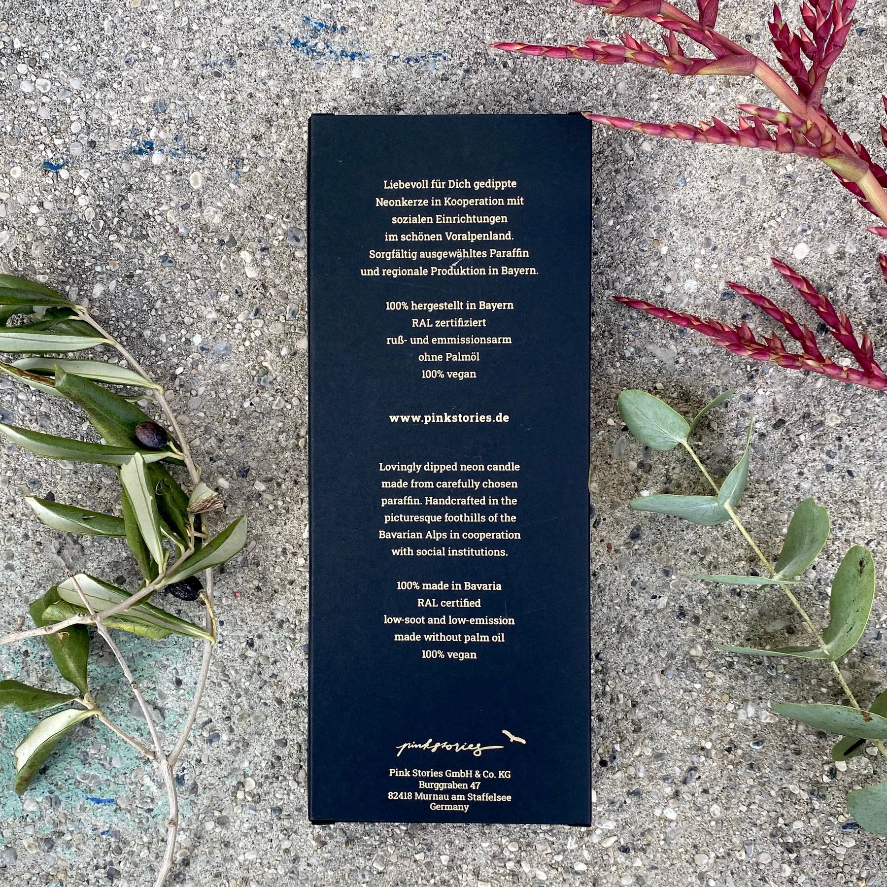 Jede Kerze wird in liebevoller Handarbeit in einer bayerischen Manufaktur gefertigt und einzeln getaucht – so entsteht der unverwechselbare Farbverlauf von leuchtendem Rot zu glänzendem Gold.