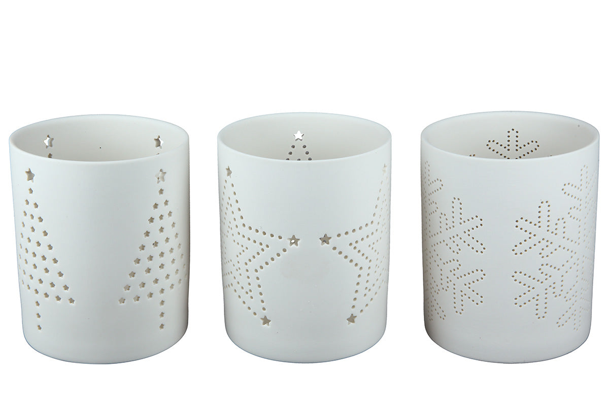 Winterzauber Windlicht-Set „Sternenglanz“ – Porzellan, 3 Motive