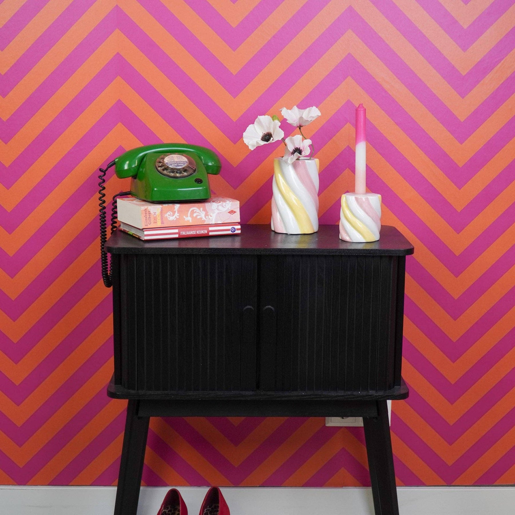 Ein fröhliches Wohnaccessoire, das Farbe ins Styling bringt und sich wunderbar mit schlichten Kerzen und ruhigen Materialien kombinieren lässt.